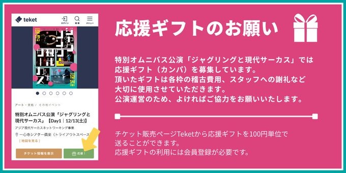 ・現代サーカス枠の研究会およびフラトレス作品枠の稽古への参加・見学が可能。